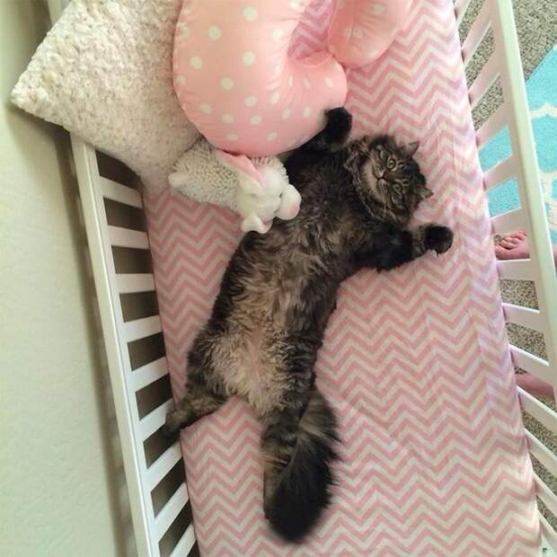 He's a 3-year-old Maine Coon mix with, Brown says, "a lot of personality."Brown says he usually finds him in there in the mornings. "He's almost a 20lb cat, so the fact that he clears the side rail is amazing in itself," he says.