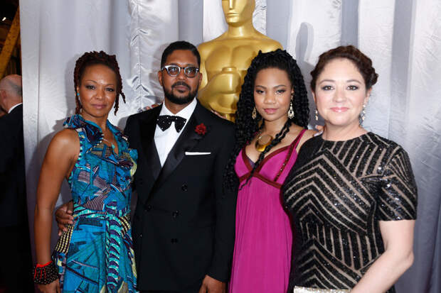 Lisa Simone Kelly, Jayson Jackson, ReAnna Simone Kelly, and Liz Garbus at the Academy Awards in February 2016.